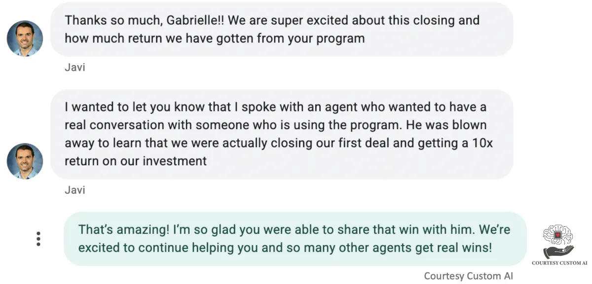 At Courtesy Custom AI, we specialize in AI-powered solutions designed to help you get more buyer and seller clients. Our done-for-you services includes digital marketing, lead qualification, appointment setting, and live warm call transfers, allowing you to focus on closing deals while we handle the heavy lifting.